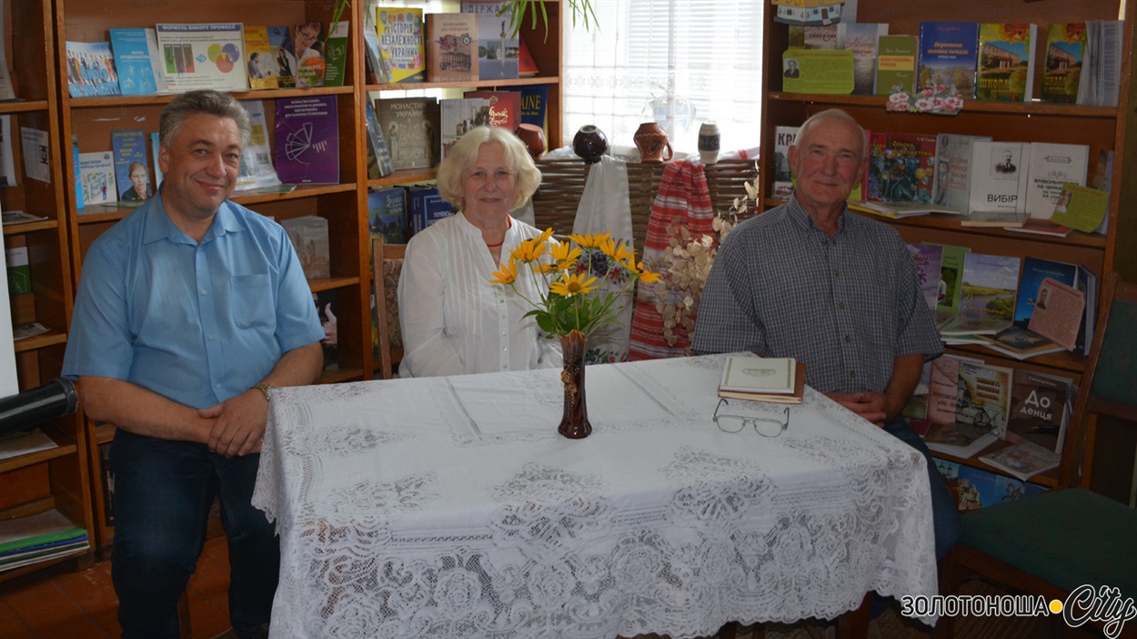 Золотоніська плеяда творчої інтелігенції зібралися у книгозбірні щоби познайомитися, поспілкуватися і поділитися здобутками. Письменники Наталія Бонь, Володимир Побиванець та краєзнавець Віталій Побиванець протягом кількох годин спілкувалися з переселенцями.