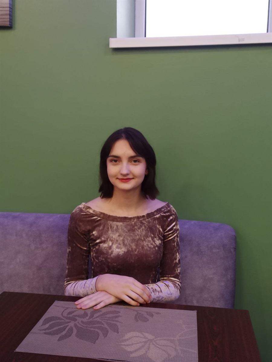 Десятикласниця очолює учнівський комітет школи: активна, творча й цілеспрямована особистість. Постійна учасниця інтернет та предметних олімпіад, конкурсів та різноманітних заходів. Окрім навчання дівчина ще й талановита акторка – з садочка бере участь в аматорських святкових виставах.