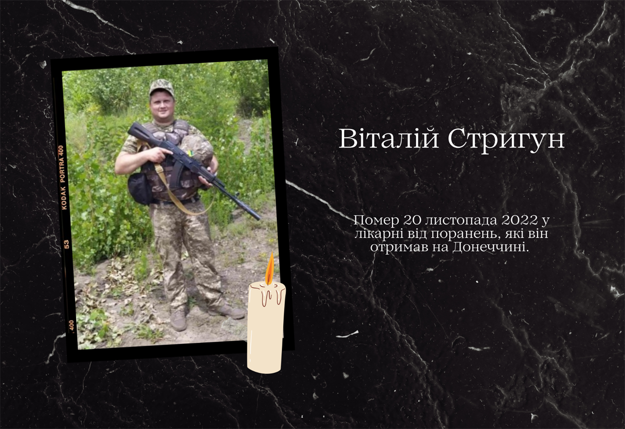 37-річний військовий з Черкащини Віталій Стригун помер у лікарні від поранень, які він отримав на Донеччині.