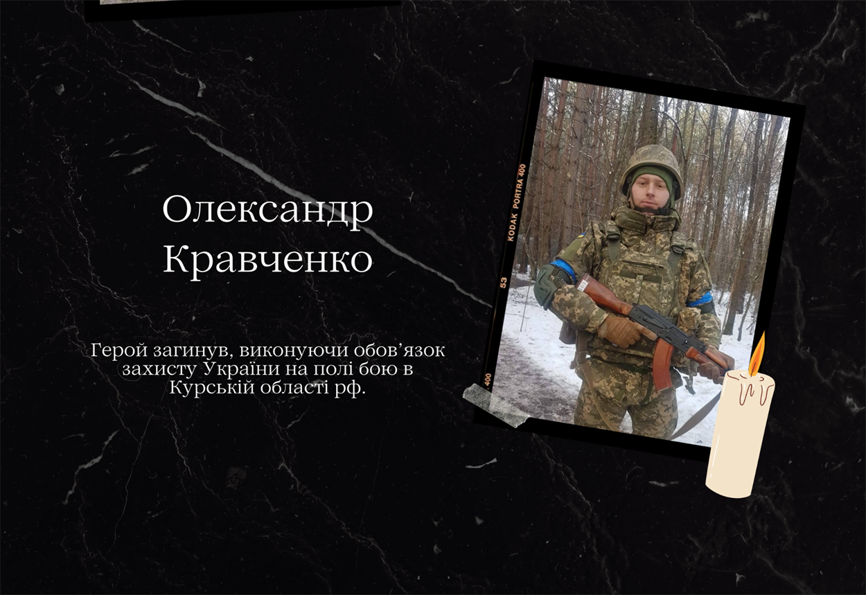 З великим сумом і скорботою повідомляємо про трагічну втрату нашого земляка — Олександра Миколайовича Кравченка, який загинув, виконуючи священний обов’язок захисту України. Його життя обірвалося на полі бою в Курській області рф.