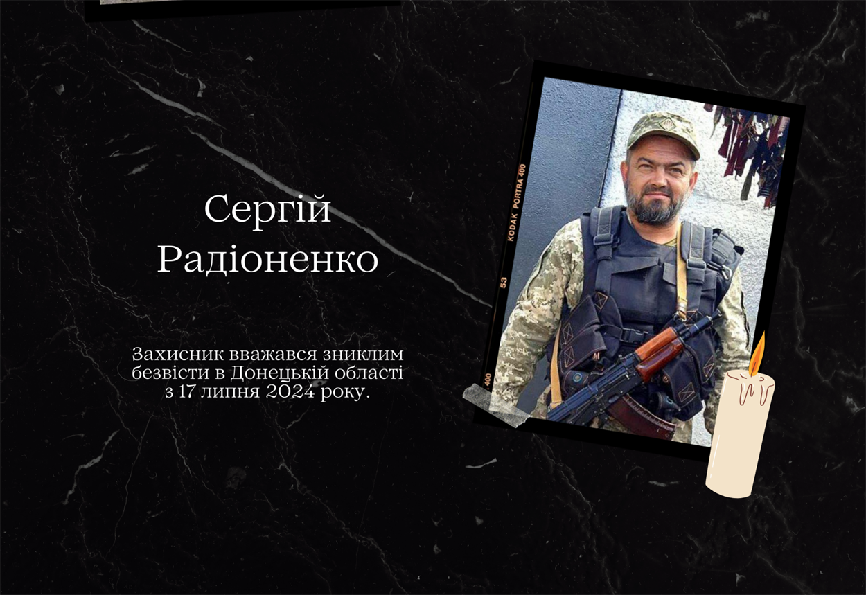 З глибоким скорботним серцем Золотоніська громада проводить в останню путь захисника Сергія Радіоненка, 1976 року народження. Він вважався зниклим безвісти в Донецькій області з 17 липня 2024 року.