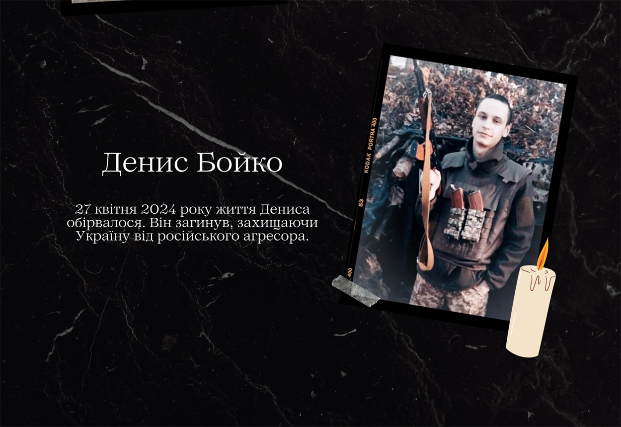 08 січня 2025 року Денис загинув у бою на Донеччині. Ця страшна втрата стала черговою чорною сторінкою для нашої громади. Його життя, обірване в 25 років, є ціною за наше мирне майбутнє, за право жити у вільній, суверенній Україні.