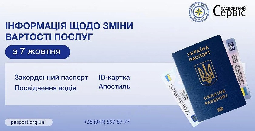 З понеділка 7 жовтня вартість пакетів сервісних послуг паспортно-міграційного характеру в підрозділах держпідприємства "Документ" на території України зросла. Про це йдеться у повідомленні "Паспортного сервісу".