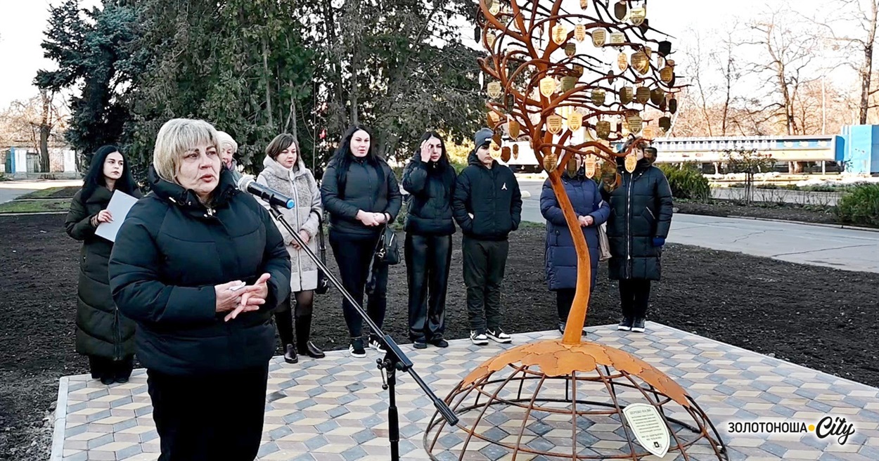 Серед містян – військові 157 батальйону 118 бригади ТрО. Вони теж почепили жетони з іменами побратимів, що знаходяться між небом і землею.