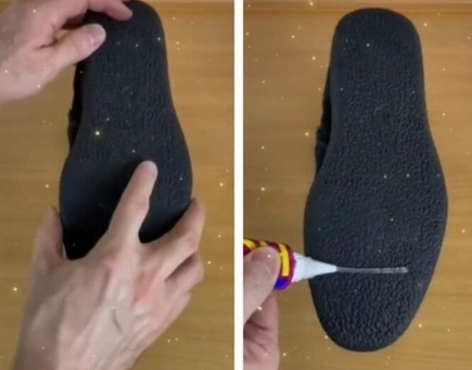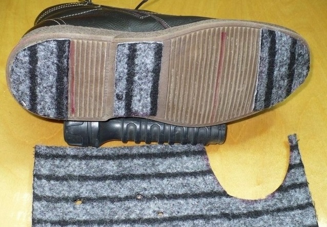 Непотрібні шматочки повсті, наприклад, від старих валянків чи шинелей, можна використати для взуття. Приклейте їх до підошви міцним клеєм і дочекайтеся висихання.