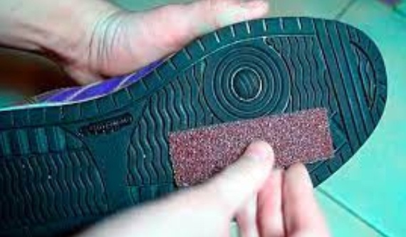 Нанесіть на підошву малюнок із клею та присипте його сухим піском. Після висихання взуття буде забезпечене ефективним антиковзаючим покриттям. Метод досить довговічний, але піщинки можуть залишати сліди вдома.