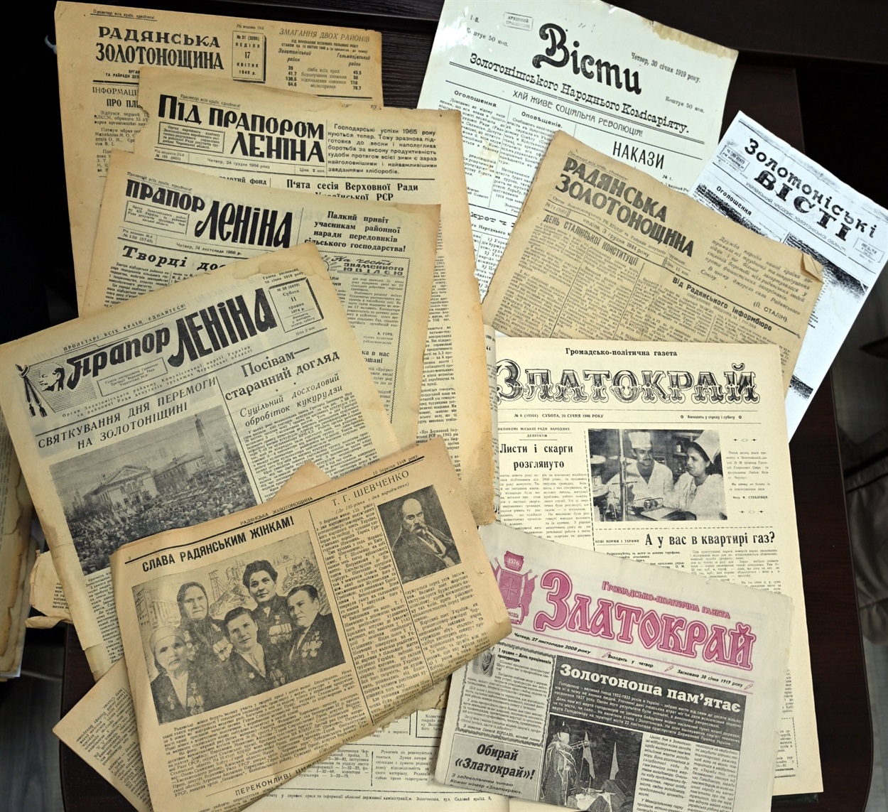 Як виживала ця найбільш чисельна категорія місцевої преси, можна прослідкувати на прикладі золотоніської газети «Прапор Леніна». Від жовтня 1930 тричі на тиждень виходив як газета «Червоний Жовтень», від лютого 1944— «Радянська Золотонощина», від березня 1958 (з перервою) — «Прапор Леніна» (від червня 1962 до березня 1965— «Під прапором Леніна»), від 1991— сучасна назва «Златокрай».